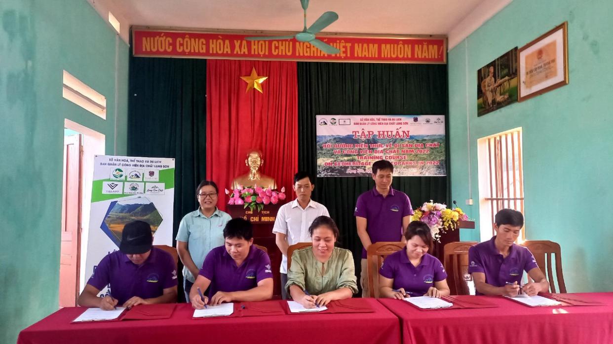 The Department of Culture, Sports and Tourism directs the Management Board of Lang Son Geopark to coordinate with relevant agencies and units to organize about 60 seminars, forums, and online working sessions for propaganda, disseminating, educating and raising awareness among officials, party members and people, especially pupils and students about the meaning and importance of constructing and developing Lang Son Geopark, protecting and promoting the heritage of Lang Son Geopark; promote tourism associated with the province's Geo-Heritages. Propaganda activities are carried out in many flexible and creative forms, through online meetings, electronic information pages, social networking sites (maintenance and development of Website, Page (fanpage) of the Management Board Lang Son Geopark named "Lang Son Geopark"); completing Video Clip, Trailer promoting Lang Son Geopark; design and apply Lang Son Geopark Logo); publish brochures, Newsletters, Handbook of Lang Son Geopark. Signing Framework Agreement of Lang Son Geopark Partner Program with 26 homestays in Bac Son and Huu Lung districts. Donating publications (Newsletter, brochure, Postcards of Lang Son Geopark) to members of Steering Committee for Establishing the Lang Son Global Geopark, Culture and Information Division of districts in Lang Son Geopark area, 26 homestays – partners of Lang Son Geopark. Successfully organizing the Contest about Geo-Heritage and Lang Son Geopark in 2022.