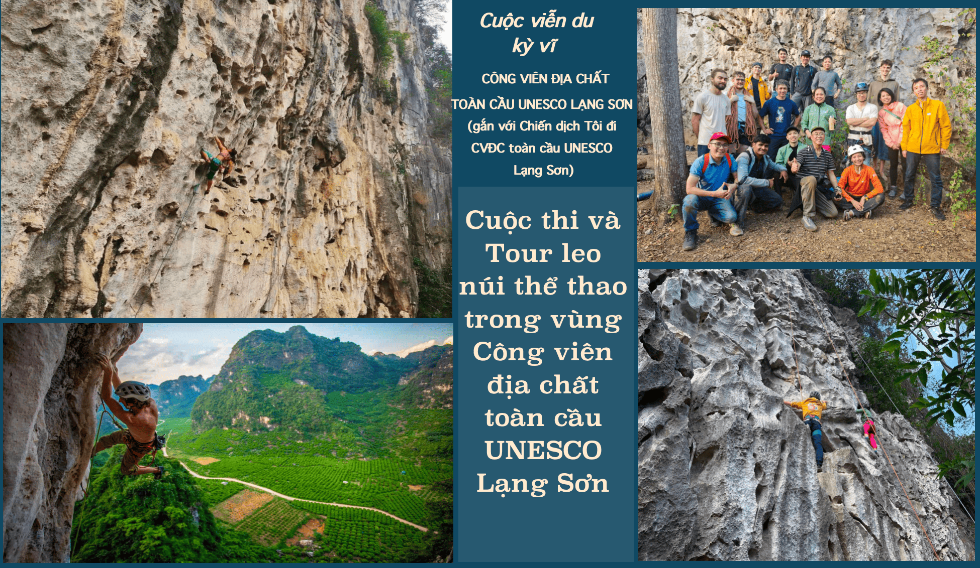 d)Tổ chức tour du lịch leo núi thể thao ngoài trời (Rock Climbing) trong CVĐC toàn cầu UNESCO Lạng Sơn