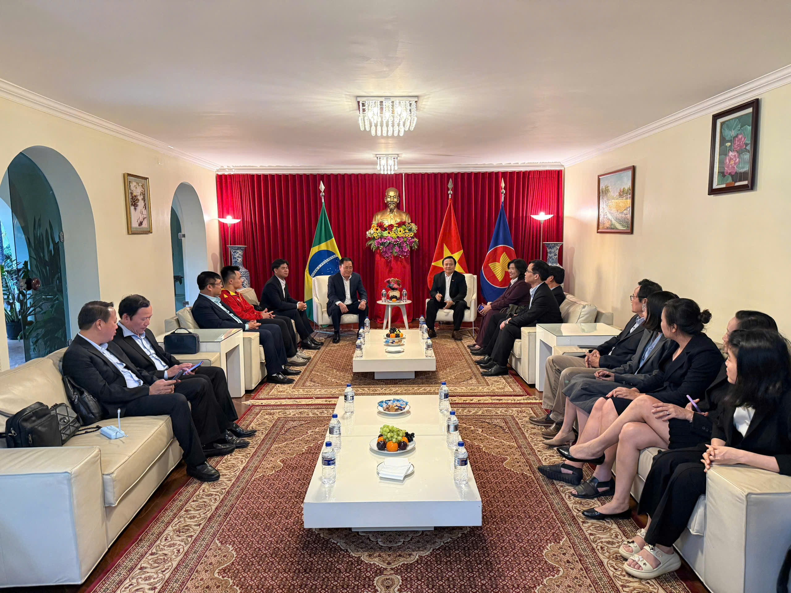 Tại cuộc gặp, Đại sứ Việt Nam tại Brazil Bùi Văn Nghị đã chia sẻ với đoàn về những kết quả nổi bật trong hợp tác giữa Việt Nam và Brazil trong thời gian qua, đồng thời giới thiệu những tiềm năng có thể thúc đẩy hợp tác với phía Brazil cũng như với các quốc gia Nam Mỹ trong thời gian tới như: sản xuất, chế biến nông lâm nghiệp; chăn nuôi, bảo tồn và phát triển rừng bền vững; thương mại và đầu tư; giao lưu nhân dân…