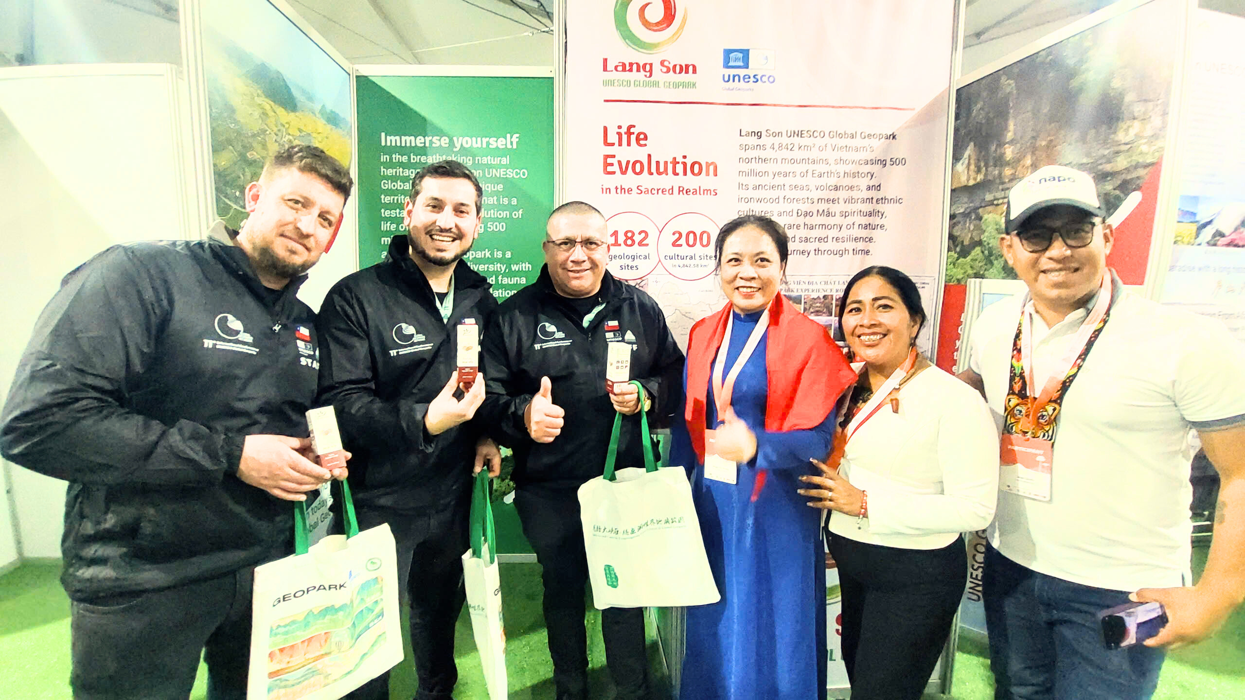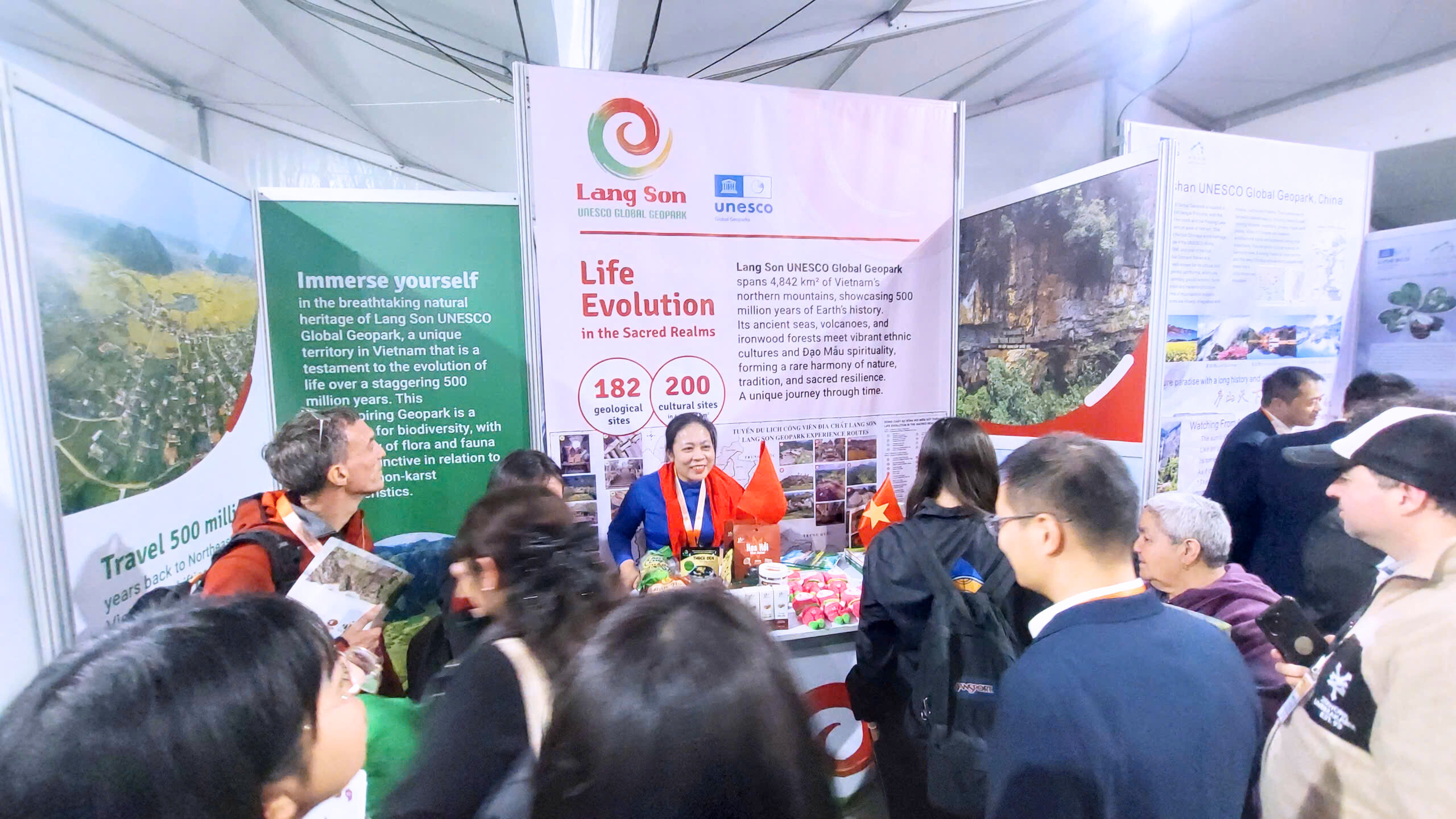 Tại gian hàng quảng bá Công viên địa chất, Đoàn đại biểu tỉnh giới thiệu tới bạn bè quốc tế những giá trị nổi bật về di sản địa chất, văn hóa, lịch sử, cảnh quan thiên nhiên của Lạng Sơn và đã thu hút đông đảo bạn bè quốc tế đến tham quan.