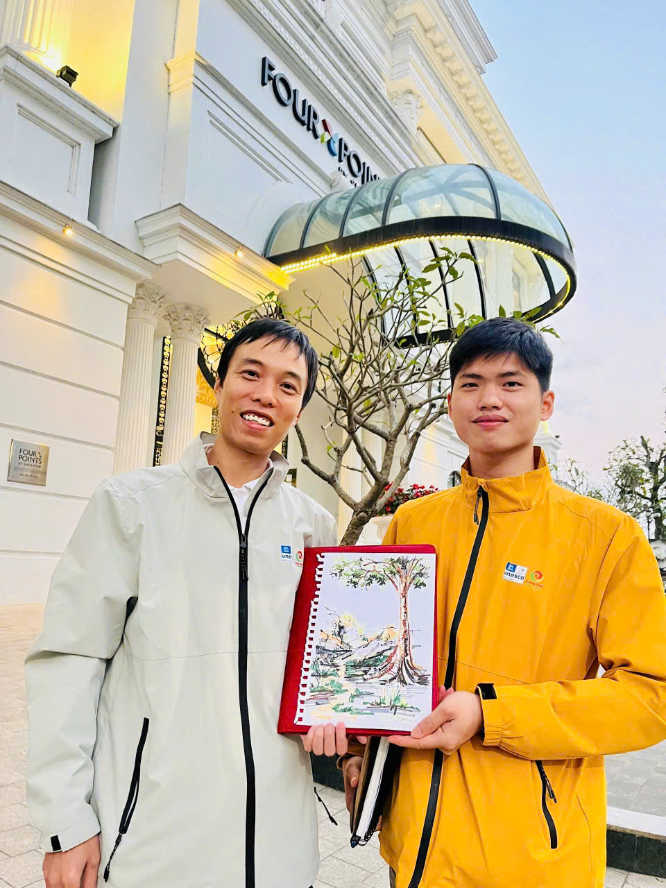 KTS – Hoạ sĩ trẻ Đức Long tặng bức hoạ Cây di sản khu vực Cửa hang Ngườm Moóc (xã Bình Gia) cho Viên chức Phòng Quản lý Công viên địa chất Lạng Sơn