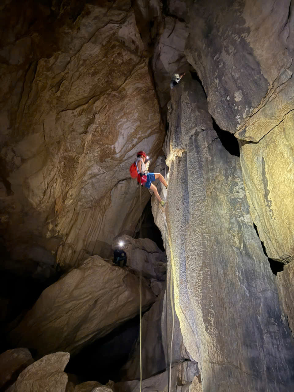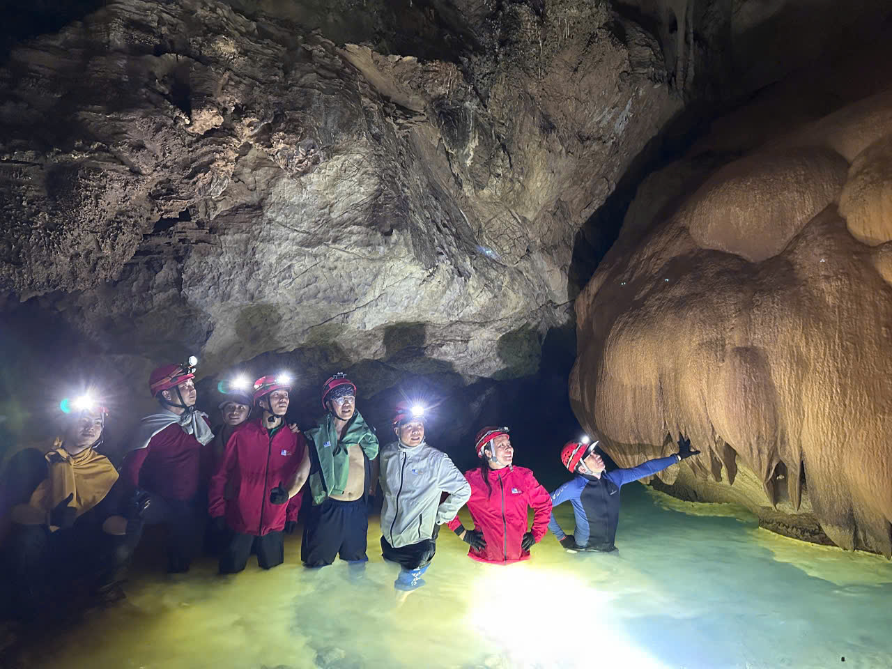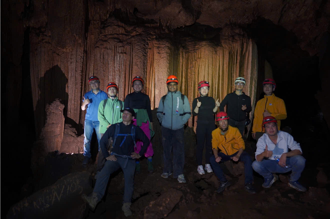 Đoàn khảo sát Hang Thẩm Khuyên (xã Tân Văn)