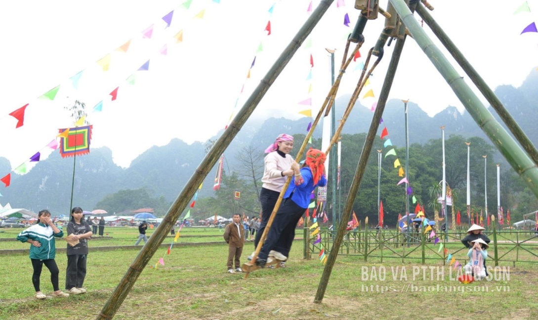 Người dân và du khách chơi trò đánh đu tại lễ hội