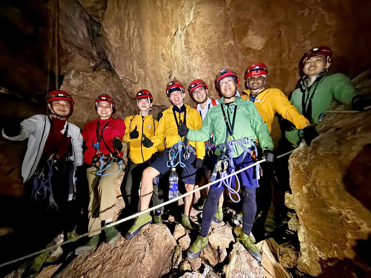 Đoàn khảo sát Hang Thẩm Khuyên (xã Tân Văn)